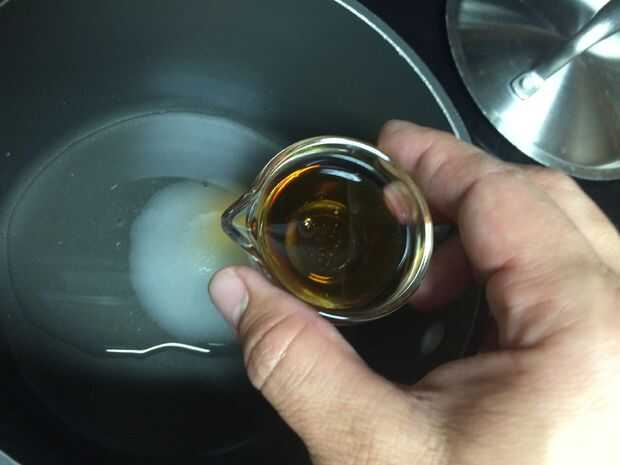 en una cacerola, añadir el agua, el azúcar y el néctar de miel. luego agregar las manzanas. Puede hacerlo en orden inverso si quieres... realmente no importa.