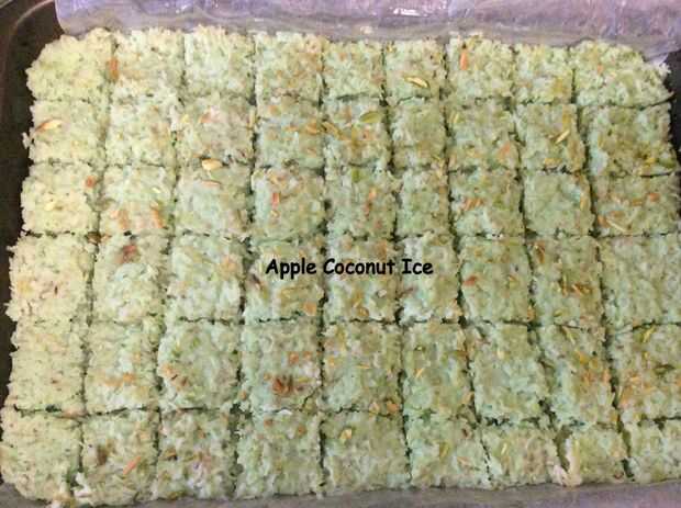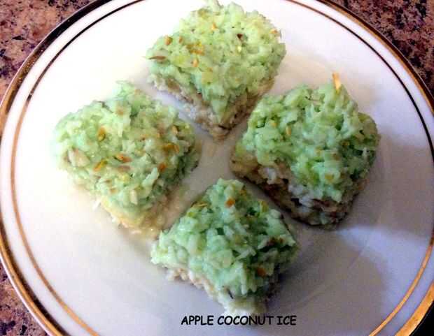 Hielo de coco manzana es un postre muy saludable especialmente para niños. Tiene un montón de manzana fresca y coco, por lo tanto ideal para su tiffin / bocado así. Esto puede ser un buen postre en reuniones así. Hielo de coco es conocido popularmente como coco Barfi en la India. Espero que les guste.
