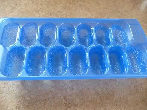 Abrir el refrigerador de vino y verterlo en una bandeja de cubos de hielo. Poner en el congelador hasta que congelado o maldito cierre. Si tienes alguna adicional a la izquierda, beberlo. ¡Es broma! Ponerlo en el frig. Beber el vodka. Usted sabe que quiere.