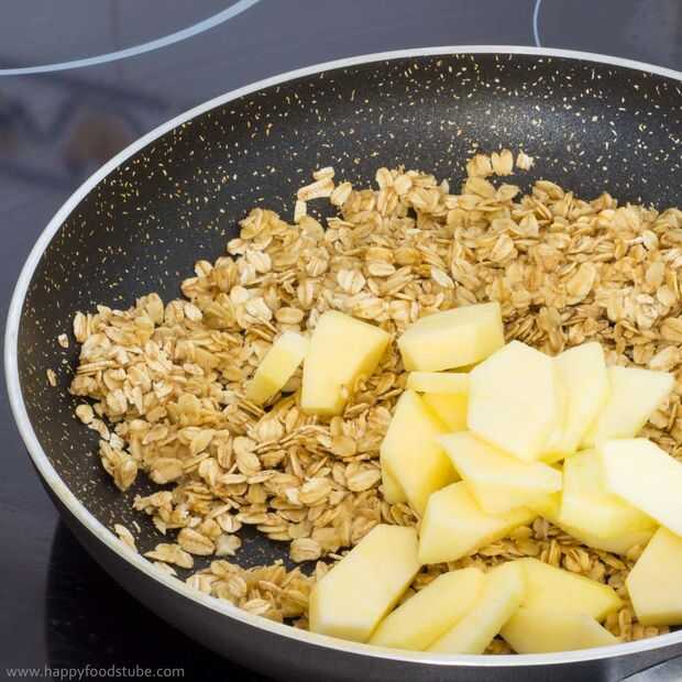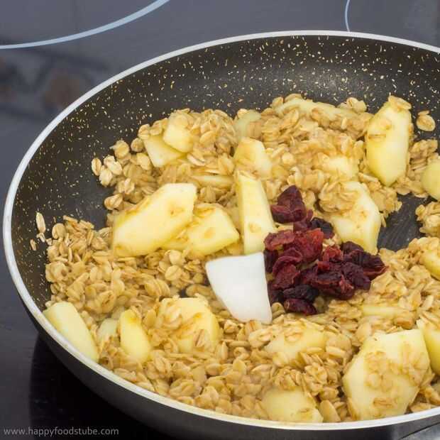 3. tarda unos 5 minutos para cocinar la avena y la manzana. Si lo prefiere avena y manzana suave, cocinar más tiempo.