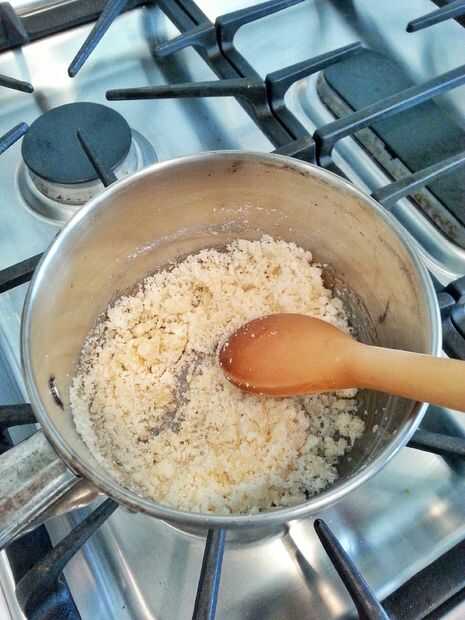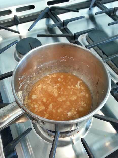Paso 15: El azúcar comenzará a forma grumos. Seguir revolviendo hasta que se convierte en una consistencia espesa de color marrón.