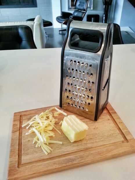 Paso 3: Rallar la mantequilla congelada y mezclar con la mezcla de harina.