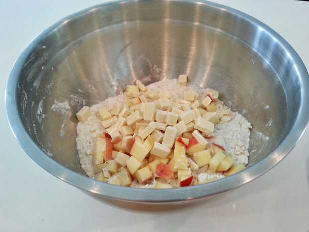 Paso 6: Añadir la manzana y chocolate blanco en la mezcla de harina.