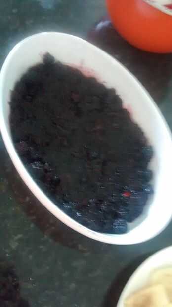 extienda la mezcla de BlackBerry en la parte inferior de un plato de horno prueba!