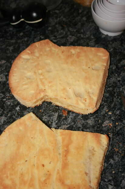 Con la plantilla de corte el círculo refrescado bizcochos a la forma de pan. Ambos a la vez, lo hice eran del mismo tamaño. Recorte cualquier pedacitos sueltos y los bordes de la forma