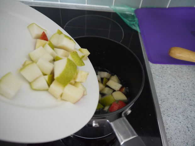 1. trocear manzana y pera como se muestra en la imagen (1)