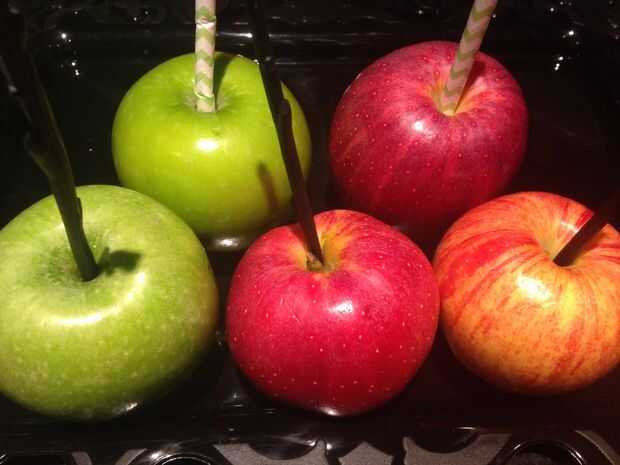 Los palos verdes y blancos he encontrado en Walmart por $1,84. Mientras que estas aparecen bastante robusto, la puñalada la manzana antes de poner el palo, si no el palo se dobla.