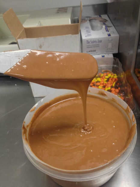 Entonces aquí es donde funden nuestro caramelo. Yo uso Caramelize de Brill, tirarlo en el microondas para: 30-1:00 intervalos, una vez que estés en el 113-115 * F eres oro. Recomiendo usar un termómetro, pero usted puede eyeball esta consistencia brillante hermoso. Es muy aburrido antes. Mente el calor, si hace demasiado calor y se van volver opacos y del derretimiento de las manzanas, demasiado cool y será increíblemente grueso y tomar por siempre para establecer correctamente.