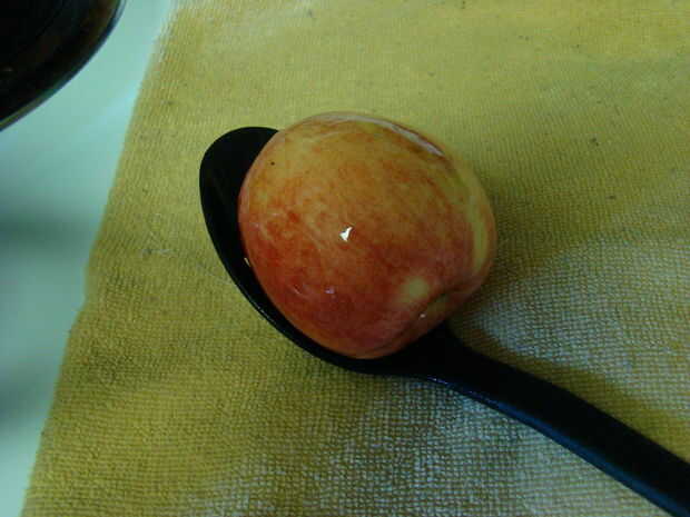 Sumergir una manzana en el agua durante unos segundos, retire el agua y luego secar la manzana.