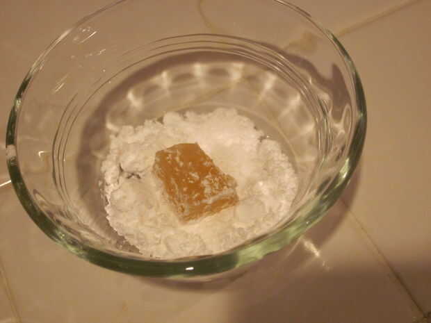 Tomar cada cuadrado de la corte y el rodillo en el azúcar hasta que se cubran todos los lados.