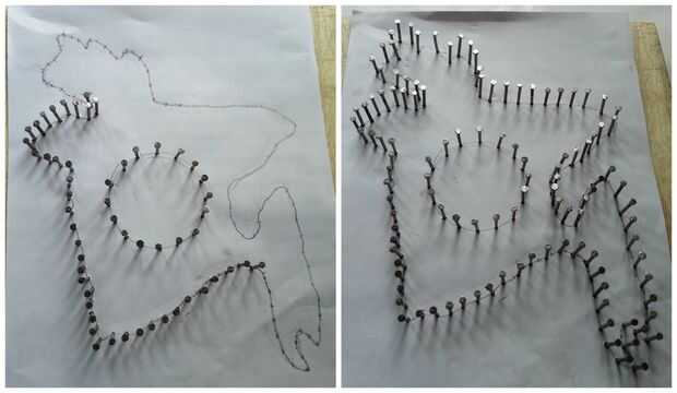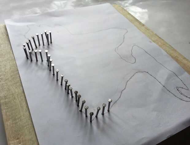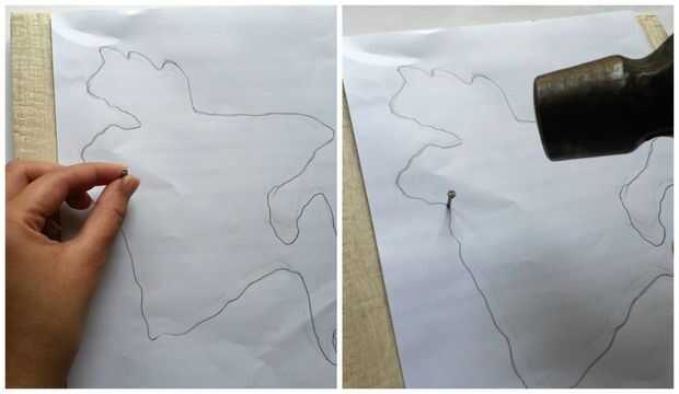 Ahora empezar a martillar los clavos a lo largo del contorno trazado. Trate de mantener la misma distancia entre los clavos. Puede marcar los lugares donde quieres que las uñas del martillo.