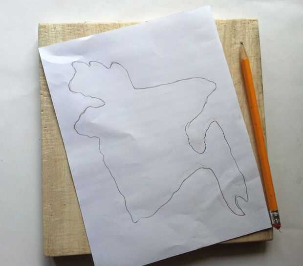 Tome un pedazo de papel según el tamaño de la tabla de madera. Dibujar un contorno de su país ' mapa con un lápiz. Coloca el papel sobre la plancha de madera.