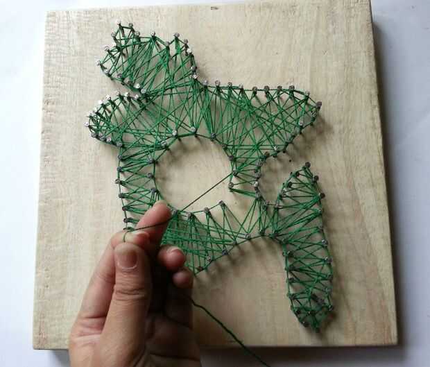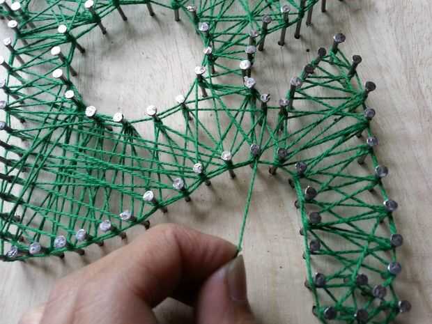 Cuando te llegue hasta el final simplemente Envuelva el hilo alrededor de un clavo y un nudo. Aplique una gota de pegamento para asegurar el nudo y corte hilo extra.