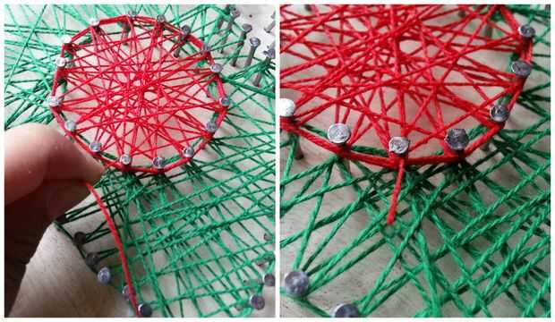 Usé hilo crochet rojo para completar el círculo en el centro.