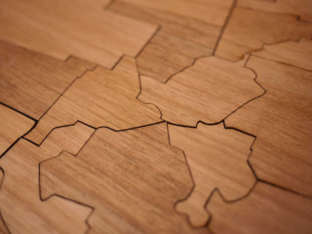 VI estas incrustaciones de madera mapa en línea y quería hacer mi propio usando el laser de corte en SF de Techshop. Encontré un plano de seattle y utiliza para generar un archivo vectorial, que yo entonces laser corte y teñido. Finalmente me gusta