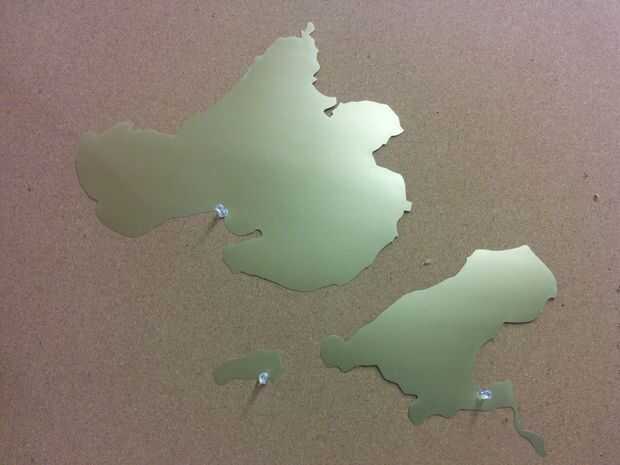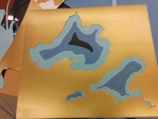 En lugar de pegar el mapa, que perfora agujeros en el lateral y clip junto con pinzas de anillo de hojas sueltas para hacer un libro. Usted puede anotar en partes ocultas de cada capa. (Esto haría que libro infantil super cool si hecha de material fuerte!)