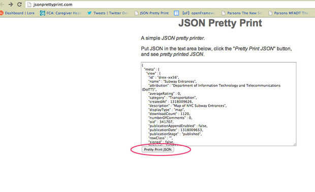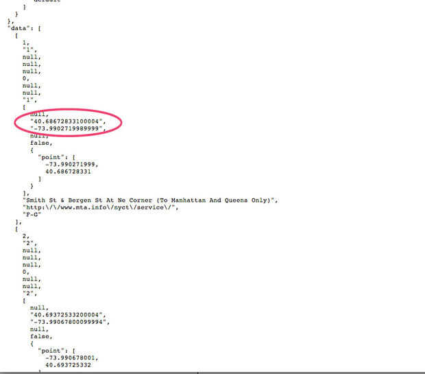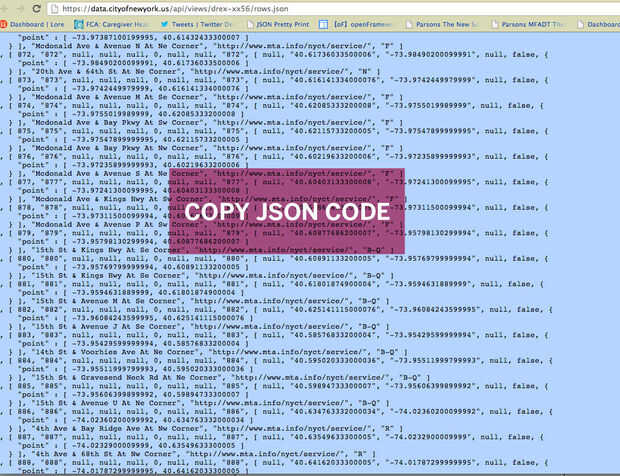 Archivo json será desordenado! 2. copia el código json 2. ir a Json bastante imprimir y pegar el código 3. Desplácese hacia abajo hasta la etiqueta de datos para obtener las coordenadas