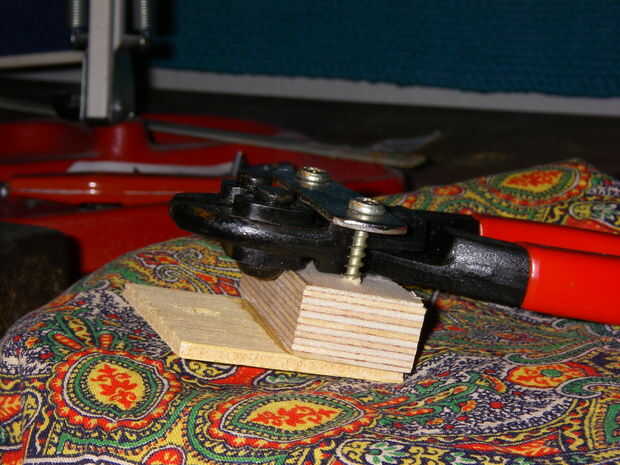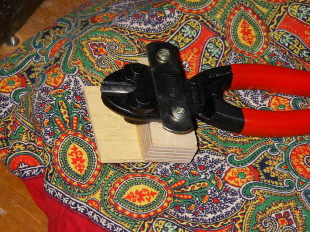 Ya que necesitaba unos 200 de ellos, pongo algún esfuerzo en averiguar cómo reducir el tiempo dedicado a cada uno a un mínimo. Las siguientes imágenes muestran cómo pimped mi corte para poder cortar la varilla rápidamente a los pedazos de (la misma longitud aproximadamente).