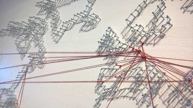 La parte más importante del proyecto. Sus destinos. Para ello utiliza mapas de google para encontrar los puntos exactos en el mapa mundial y había transferido a mano alzada en el mapa. Sólo utilicé mi flightpaths pero se pueden tomar tus viajes por carretera o barco cruceros también en el mapa. Para esto también utilizado el mismo método exacto como los otros clavos. Marcar, perforar, taladrar.