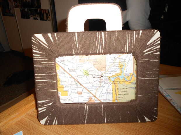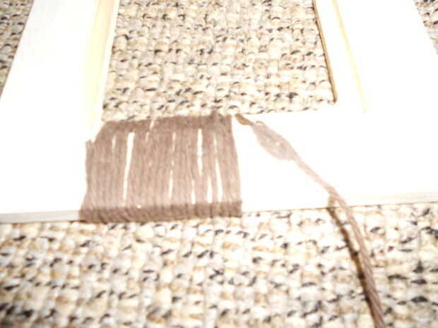 Envuelve el hilo alrededor de la estructura (ADVERTENCIA: Esto lleva mucho más tiempo que usted podría pensar!), grabar el final hasta el marco. Elegí el marrón ya que quería hacerlo en un marco de "maleta".