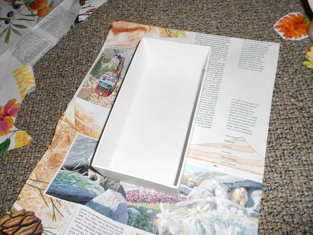 ModPodge se difundió en la cara principal de la caja y pulse el mapa sobre la misma.