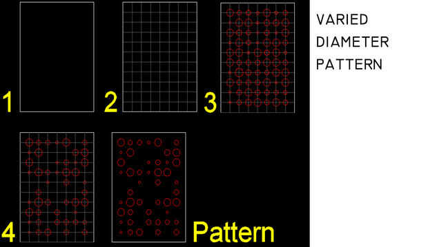 5. utilizar las partes claras y oscuras de la imagen a su círculo de decisiones. Ya que tienes una red, si el punto de la célula de la red cae en la parte oscura de la imagen, haz un círculo grande. Si cae en la luz parte de la imagen, haz un círculo pequeño. El truco es ser selectiva con sus diámetros. Stick con 4 o 5 tamaños a más, o va ser intercambio de brocas mucho. Con 4 o 5 diferentes tamaños le dará una agradable variación, si utilizas menos, la claridad de la imagen será menor. No estoy diciendo esto va a ser fácil, pero se puede hacer con paciencia y ojo para el detalle.