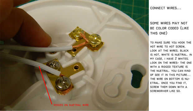 En un cable de dos, código de color que tiene un blanco y un cable negro, el neutro es el blanco. Si tu cable es como el mío, todos de un solo color, puede encontrar el neutro mirando el cable sí mismo. El neutro tiene un canto levantado en ella, o una textura de algún tipo. El liso de alambre, el alambre caliente.
