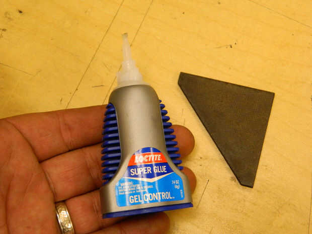 Usando mis pedazos de nuez, usar Loctite Gel (el mejor y único Super pegamento utilizo) para pegar estas en como cubiertas. Que ocultan los bordes quemados de la base que asoman a través del panel, pero también ayudar a asegurar la parte inferior de cada panel a la base mediante el bloqueo de los paneles. Aplique el pegamento a todo el lado posterior de la pieza de la cubierta y presione firmemente contra la cara del panel y la ficha base dentro de la ranura.
