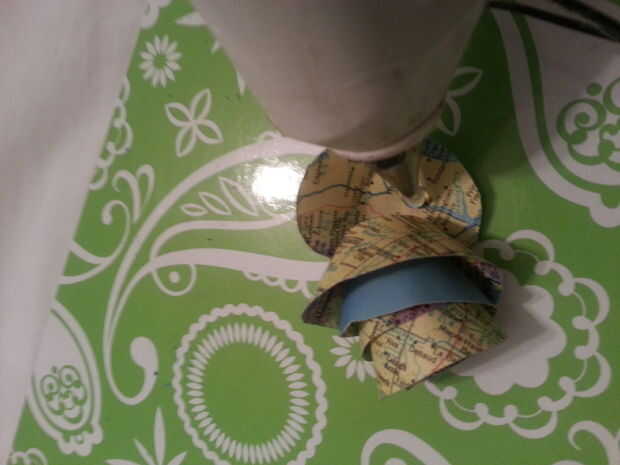 Asegúrese de no dejar caer la flor en este momento o tendrás a todo todo otra vez! Ahora tendrás que utilizar tu pistola de pegamento caliente para pegar la parte inferior de la flor de papel (la parte en espiral) al círculo en el centro de la espiral. Tenga cuidado de no quemarse! También tienes que pegar en el otro lado del mismo modo sólo para asegurarse no desentrañar.