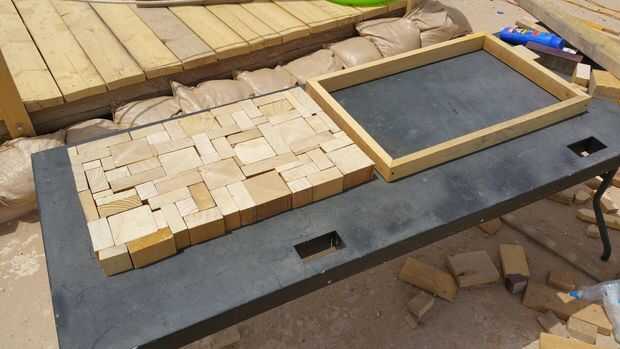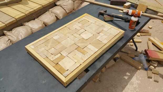 Comience cuidadosamente quitando el marco y colocarlo junto a las piezas de madera. Tomar una fotografía del arreglo porque su como poner un rompecabezas de nuevo juntos. Ahora necesita pegar cada pieza y colocarla en su ubicación original dentro del marco. Asegúrese de que se aplica una cantidad abundante de pegamento para asegurar la adhesión apropiada. Un tiro caliente puede ser capaces de mantener presión todo en su lugar pero que no era yo. Una vez que deja el pegamento unas horas (o un día), arena de un lado para crear una superficie plana. Esto puede tomar un tiempo. Una lijadora de banda haría el trabajo rápido de esto.