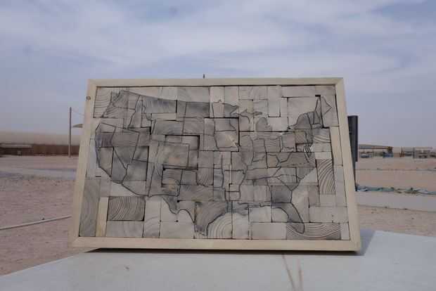 Paso 1: Comenzar con un mapa Real Empezó con un mapa laminado. Luego recorte la forma de estado.Paso 2: Cortar el tablero Primero mides el mapa en la parte más ancha. Tienes que escoger el con Consejo desea. Usé 1 x 6 y 1 x 10. Entonces ya sabes en e