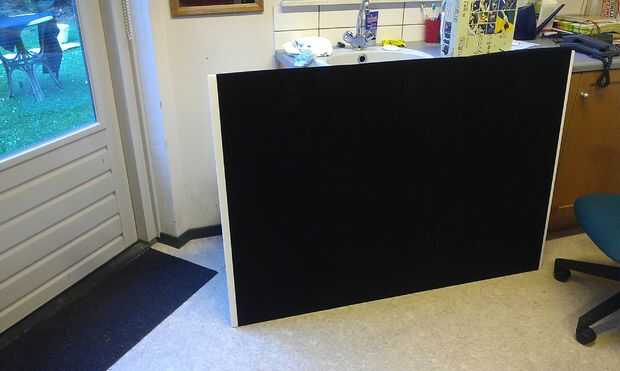 Primera pintada el foamboard, así que eso si el material no era perfectamente alineados no ves blanco rayas. Lamentablemente no pude comprar un gran pedazo de velcro, así que tuve que usar tres funciones (bueno, cuatro, me cagué).