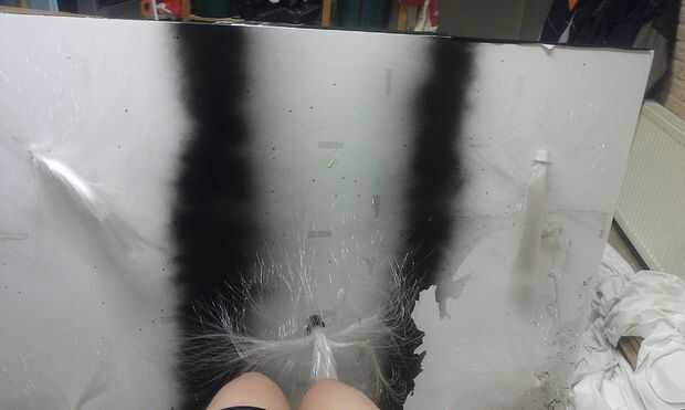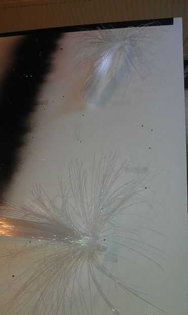 Como se puede ver, debido a despeinarte, spay negro líneas pintadas son también en la parte posterior y también la esquina derecha carece de una capa ya que el velcro era un poco más pegajosa de lo que pensaba. Primero asomó la ufolamps en cada esquina (realmente no sé por qué, acaban de empezar en algún lugar) y lo que es sólo una cuestión de (otra vez), meter y meter y meter (ver netflix) y meter... La ventaja del velcro fue que la aguja penetra en hoyos me alojé 'abrir', pero encogido sólo un poquito, que molesto a las fibras a través de la guía, pero una vez a través de ellos se quedaban donde estaban. Sin pegamento necesitada!
