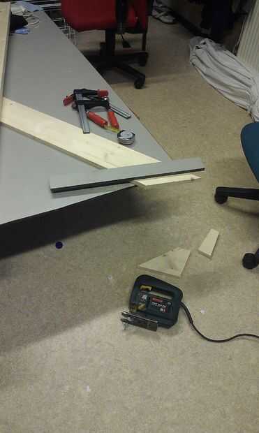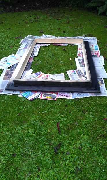 Así, mi cuerpo es un poco distinto el marco que mrtrick de hecho. La segunda foto lo muestra bastante bien. Primero hice el marco externo y luego tornilladas en el marco interno, utilizando un montón de cola y screwes, lo asegurando no desmoronarse. No hice muchas fotos de esto poco, lo siento. La pintura utilizada fue pintura barata (2 euros) pero funcionó a la perfección. El objetivo era ver el woodpattern, pero esta es su opción personal.