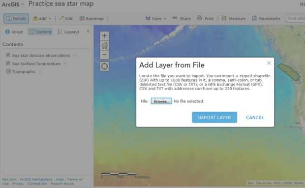 - Examinar el equipo para encontrar el archivo .csv que acaba de crear. Haga clic en "importar la capa de datos"