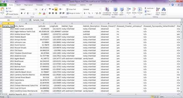 Crear el archivo de datos: lo primero que tienes que hacer es crear el archivo de datos que se cargarán. Vamos a crear uno para observaciones registradas de la enfermedad de estrella de mar. Considerar qué información puede o la necesidad de incluir. He incluido los siguientes: