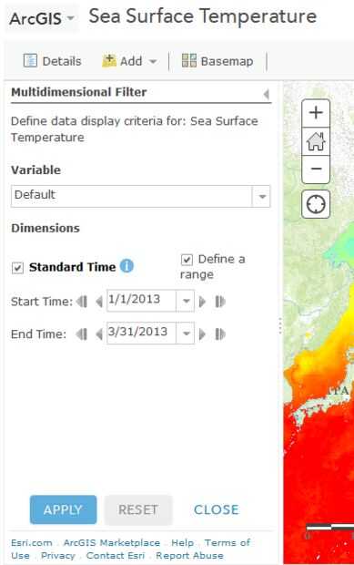 - Para establecer el intervalo de tiempo, haga clic en el mar de temperatura de la superficie desplegable menú otra vez