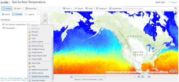 - En la parte inferior haga clic en "desactivar animación en tiempo". Observe que la barra de desplazamiento se ha ido. Usted esta viendo actualmente un promedio del conjunto completo de datos del 2006 al presente.