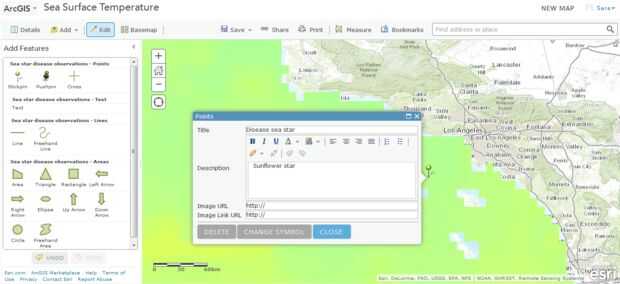 5. Zoom a una ubicación específica en el mapa (yo escogí Los Angeles, CA). Haga clic en una de las opciones de punto (stickpin, Chincheta o Cruz).