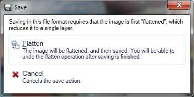 - El segundo pop up le advertirá que la imagen se "acoplarán." Esto significa que todas las capas se acoplarán en una capa. Esto debe hacerse para obtener un archivo de imagen regular el archivo .pdn.