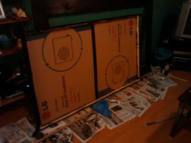 Cubrí la parte delantera de mi mapa de la estrella en drill de algodón negro. Para estirar el material sobre el marco es bastante simple y se realiza de la misma manera como estirar la lona. Este instructable por Gburg_06 muestra con más detalle cómo hacer esto, pero en pocas palabras:
