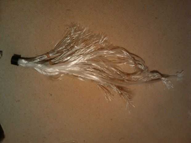 A partir de la parte inferior, con cuidado romper abierto parte del material envuelto en el tronco y el devanado de arranque. Habrá lotes de explotación de la cinta adhesiva en lugar, pero sólo cuidadosamente pelar las 'hojas' hacia atrás. Cada rama tendrá un arreglo similar, continuar despegando las 'hojas' hasta que no haya ninguna izquierda. Ahora, usted tendrá que eliminar cualquier otro-cinta adhesiva mantiene el árbol juntos y las fibras se deben dejar solos. Muchas muchas muchas horas más tarde, tendrás algo parecido a esta izquierda.