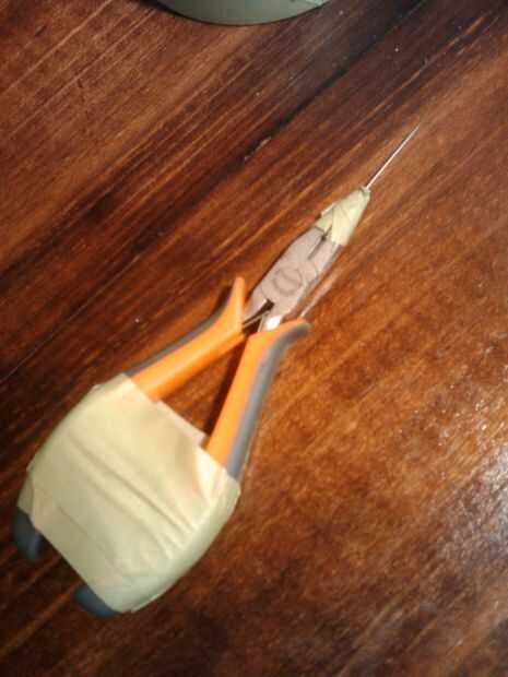 Por supuesto, es mejor golpear un montón de agujeros en una sola vez, asoman a través de un montón de fibras, luego pegue mucho, luego repetir. Y repita. Yyyyyy repetir. Tomar descansos de vez en cuando, porque constantemente las pinzas de agarre y empujando las fibras a través de comenzará a doler después de una hora o dos. (Poker de agujero de la Mk II, con la aguja con cinta a una mandíbula, las garras con cinta cerrada, y las manijas exprimieron junto y grabado del mismo modo es muy útil)