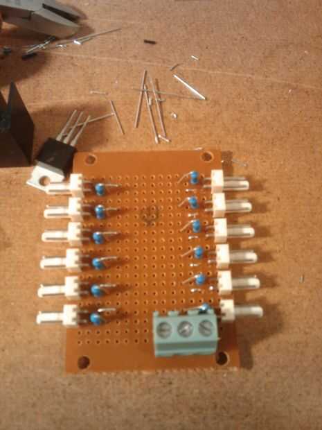 Si usted tiene un gran número de LEDs de potencia, puede ayudar a construir un tablero de conexiones. Este simple circuito divide el suministro de 30VDC en 12 tomas de corriente, cada uno con una resistencia de balasto de tamaño adecuado. Hace mucho más fácil cableado.