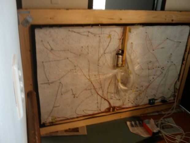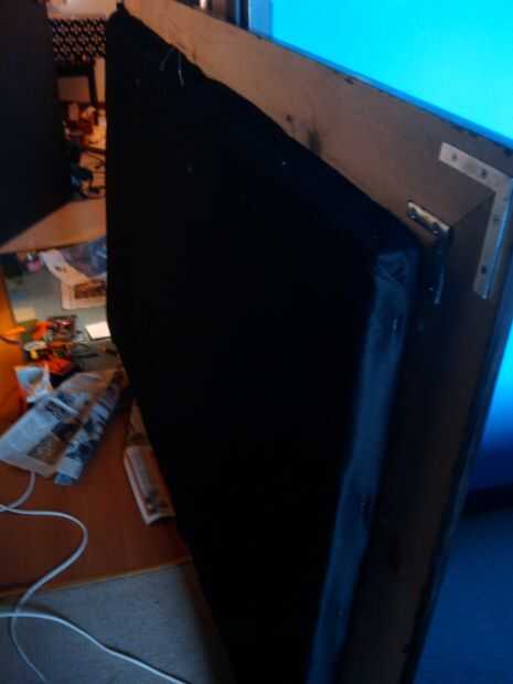 A continuación, la grapa más paño negro en la parte posterior del marco para bloquear cualquier fuga de luz y para proteger las fibras y la electrónica.