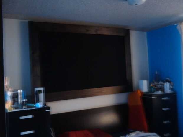 Poner dos tornillos largos en el borde superior del marco interior y poner algunos bastante resistente alambre entre ellos. Colgar el cuadro en la pared, hacer caer cualquier ornamentos en el proceso, plug in, y listo!