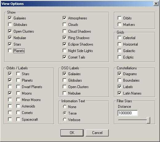 * Ir a Render -> Opciones de vista... , apagar de planetas y mostrar diagramas de constelación.