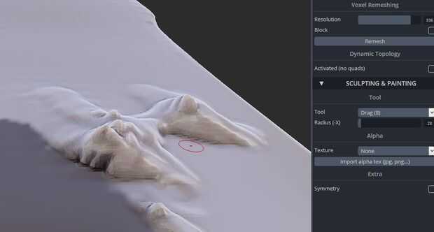 Si es necesario, ajuste el control deslizante de "resolución" bajo topología y haga clic en "remesh" para hacer las cosas menos bloques.