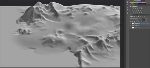 Este paso requiere algún dibujo, pero es opcional. Si desea ajustar un poco sus montañas, este es el tiempo para hacerlo. Iniciar una nueva capa y añadir algunas sombras adicionales, enfocar sus líneas de cresta y ajustar cosas como.