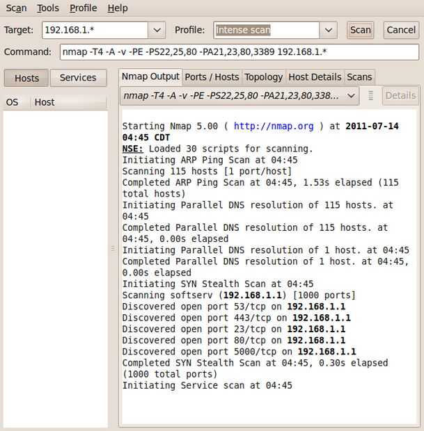 Nmap (con un gui front-end como zenmap)